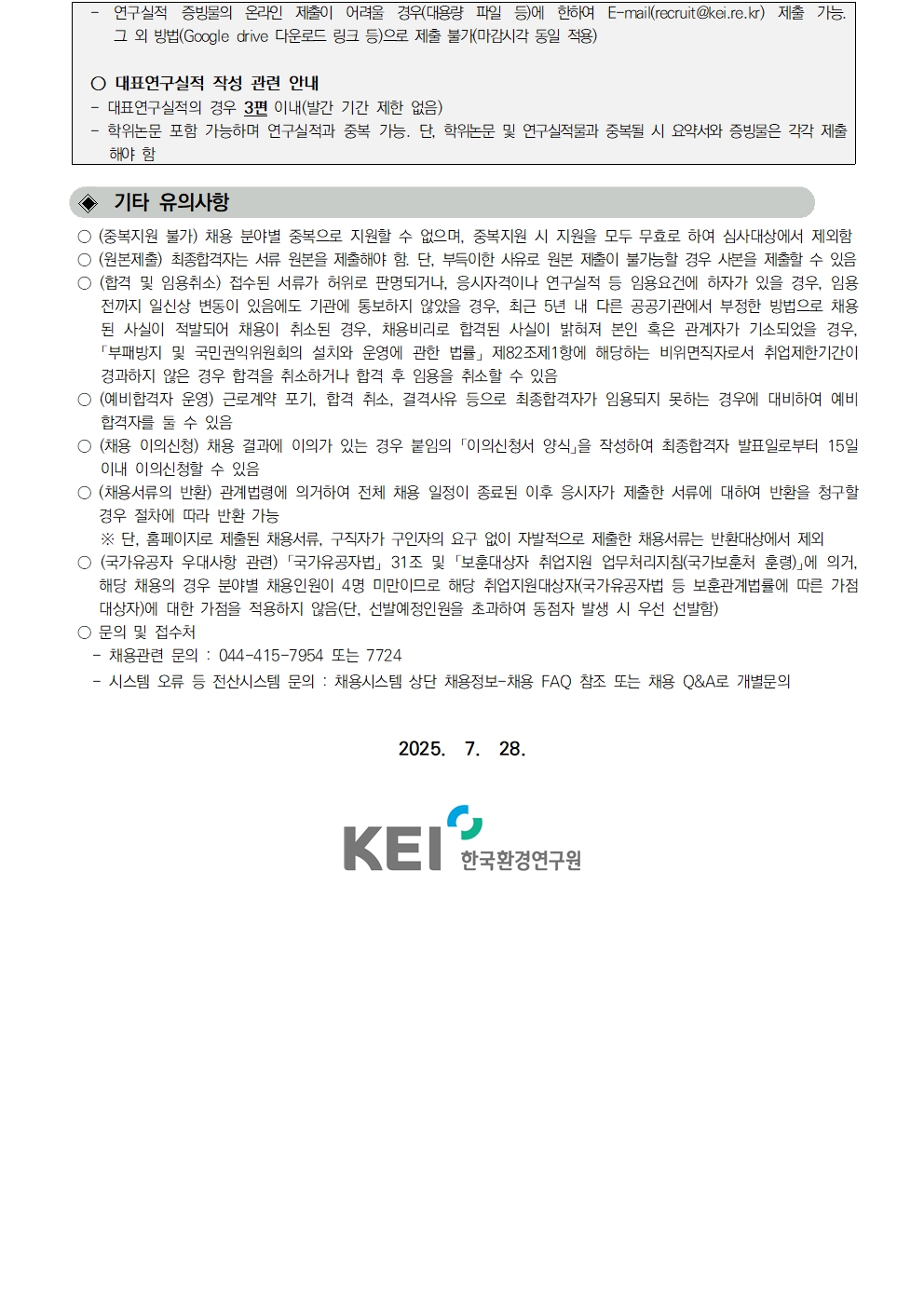 [한국환경연구원] 2025년 제2차 인력채용(연구직) 공고(부연구위원)